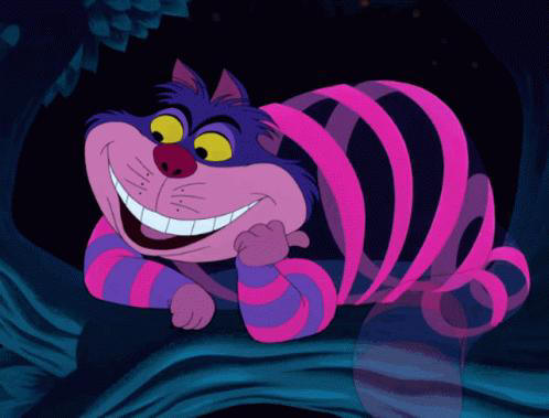 The Cheshire cat is a character in Lewis Carroll's "Alice In Wonderland" novel, a mysterious character with a distinguished feature that involves a periodic gradual disappearance of its body, leaving only one last visible trace; its iconic grin. He can disappear and reappear just about anywhere at any time.
